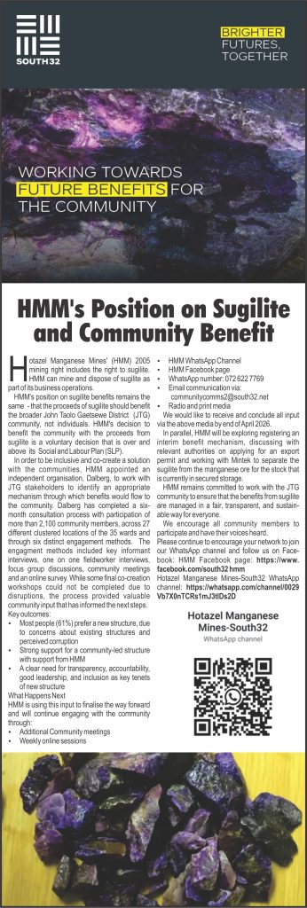 Kathu, Kuruman, Deben, Hotazel, Black Rock, Postmasburg, Olifantshoek and surrounding villages.